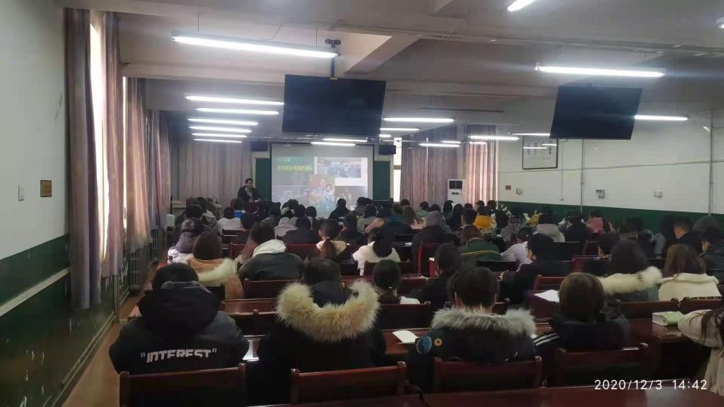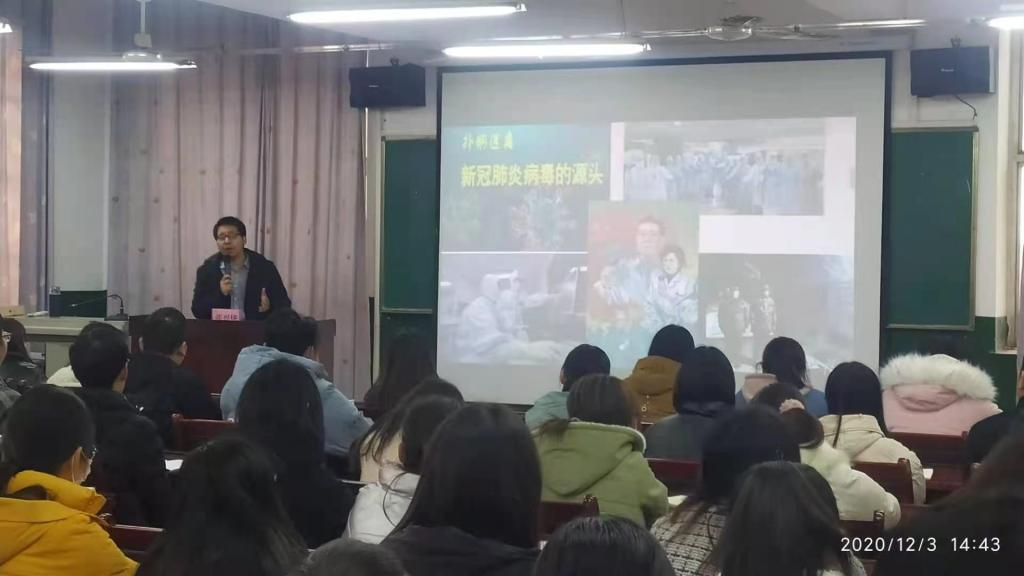 张兴华以“体现人民至上 回应时代需求----以民法典为例”为主题,讲述以习近平同志为核心的党中央“人民至上”的理念。他以不平凡的2020年为始,通过图片和视频介绍了新冠病毒疫情下,党中央带领人民进行疫情防控阻击战的历程,图文并茂的展现了党中央在疫情防控中“人民至上”的经典论断。随后,他以“人民至上”为核心,讲述民法典中关于体现人民中心和回应时代需求的亮点,结合“校园贷”到“扶不扶”等案例予以阐述解读,让同学们有针对性的了解民法典知识,切身感受到民法典并非高高在上,而是与每个人的生活息息相关。