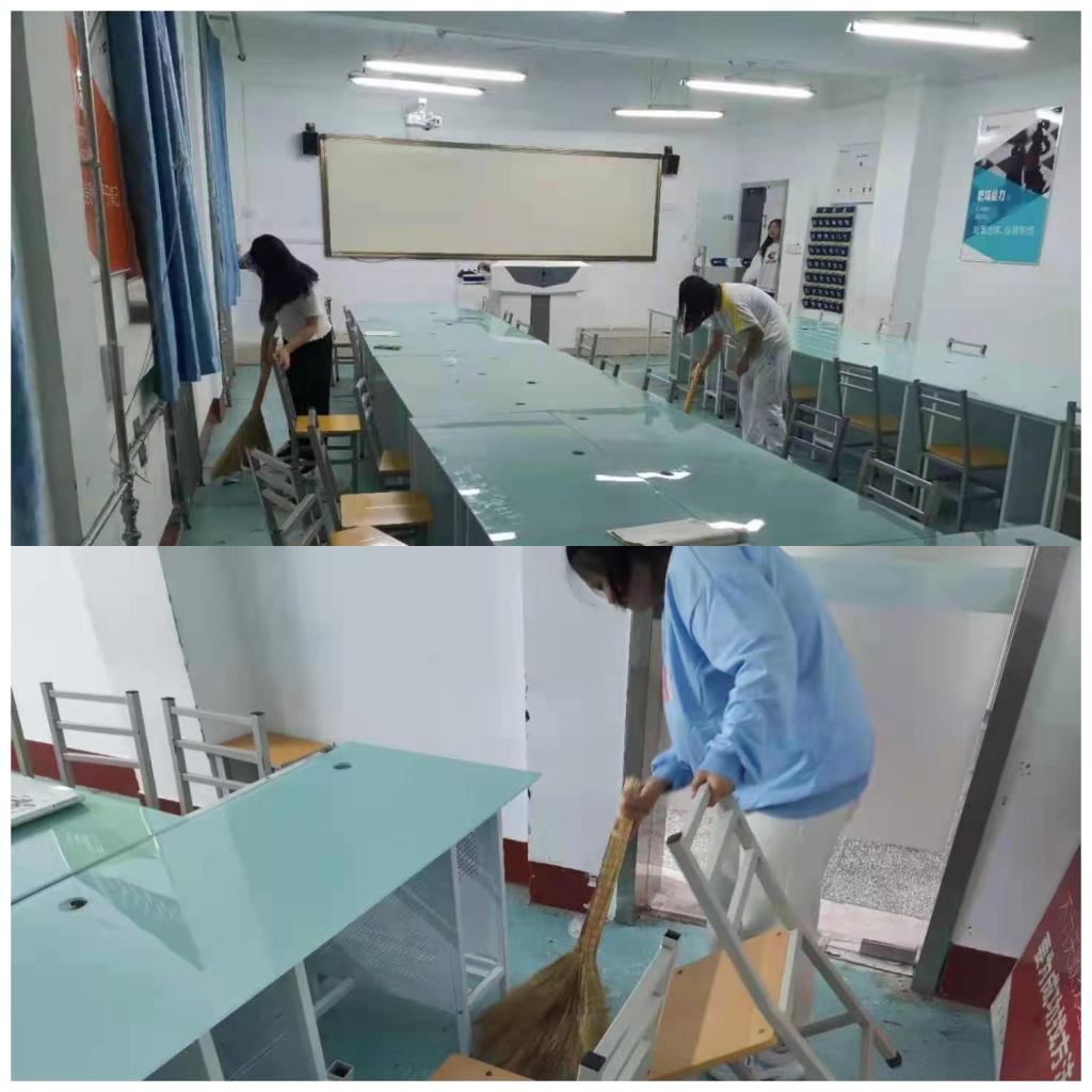 在活动的过程中,志愿者们不分你我,相互帮助,扫地、擦桌子、拖地,每一个环节都是一丝不苟地完成。这次的大扫除活动不仅是对青协成员的一次磨练,更是为即将到校的新生提供了一个良好的学习环境。随着一个晚上如火如荼的大清扫活动结束,一个个干净整洁的教室呈现在眼前,志愿者们积极肯干,不怕脏不怕累,挂着汗珠的脸上洋溢着欣慰的笑容。
