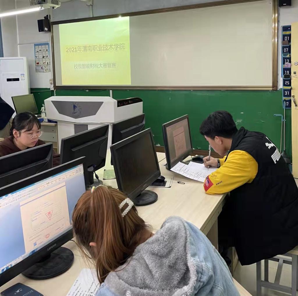 本次智能财税赛项分为两部分:一是资格赛,主要考察员工的会计基础知识和税法相关知识;二是决赛,决赛参照2021年陕西省智能财税竞赛选拔赛项目,分业务财务、财务会计、财税主管、税务会计四个角色考察员工的税务核算与筹划技能、人人协同和人机协同处理财税综合业务的能力。通过资格赛选拔,共选出12名同学参加校赛决赛。经过两个小时的激烈竞争,最终,谢误会等四名同学获团体一等奖,胡兵等四名同学获团体二等奖。
