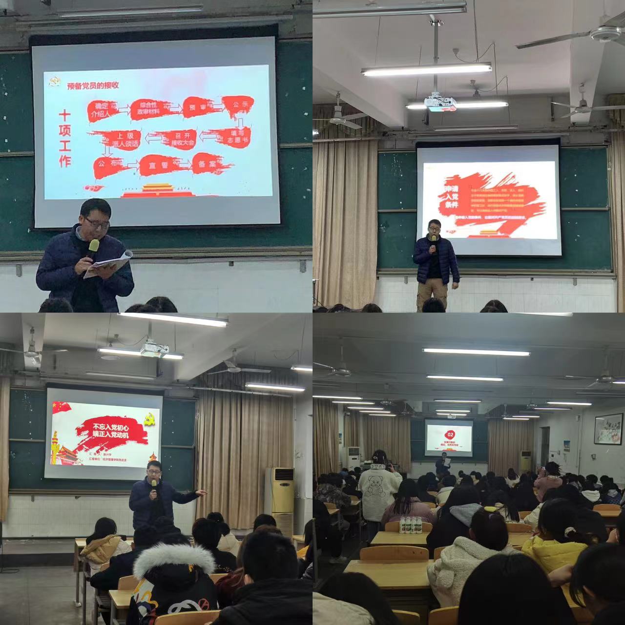 张兴华以党的性质、党的指导思想、党的最高理想、党员的权利和义务等党的基本知识,以及申请入党的条件、如何以实际行动早日加入党组织为主要内容,为参会员工上了一堂生动精彩的专题党课,通过英雄人物和经典案例解读为什么要入党,鼓励同学们要找到自己入党初心,认真思考入党是为什么,入党以后要干什么,树立正确的入党动机。张兴华要求所有申请入党的同学要以更高的标准、更严的要求来规范自己的言行,不忘入党初心做表率,牢记责任使命勇担当。