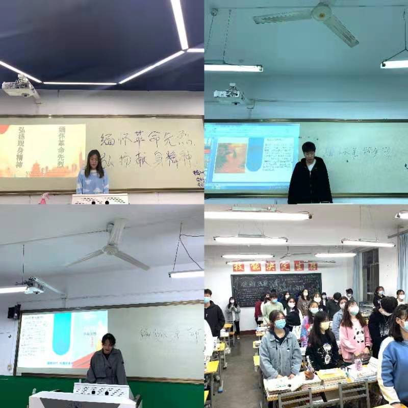 在团课上,全体学首先生起立奏唱团歌,激昂的歌声在教室内回响。各班团支书具体讲解了革命烈士邱少云、赵一曼和夏明翰的英勇事迹,了解烈士们为祖国、为人民抛头颅、洒热血,不惜牺牲自己生命的感人事迹,体会先烈们那种坚贞不屈、百折不挠、英勇无畏的高贵品质和顽强拼搏、大公无私的革命精神。最后联系近期严峻的疫情形式,颂扬了钟南山院士在此次疫情抗疫中的英勇献身精神,最后以“苟利国家生死以,岂因祸福避趋之”作为此次团课的结束语。