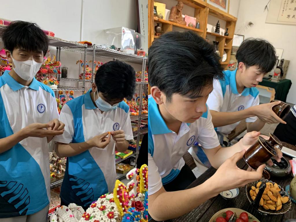 非遗面花传承人申红云、惠相楼和澄城尧头窑陶瓷烧制技艺省级传承人刘忠阳三位老师热情接待了师生,全面细致为师生介绍了澄城面花和尧头窑制瓷的历史发展及传承,各位老师匠心传承、守正创新、精益求精的精神深深感染了师生。在非遗基地,师生参观了精美的面花作品和尧头窑成品,亲身体验了面花和尧头窑的陶瓷制作过程。双方就进一步深化合作进行热切交流,三位非遗传承人就通过微信公众号宣传推广、作品图片授权等事宜达成初步合作意向。