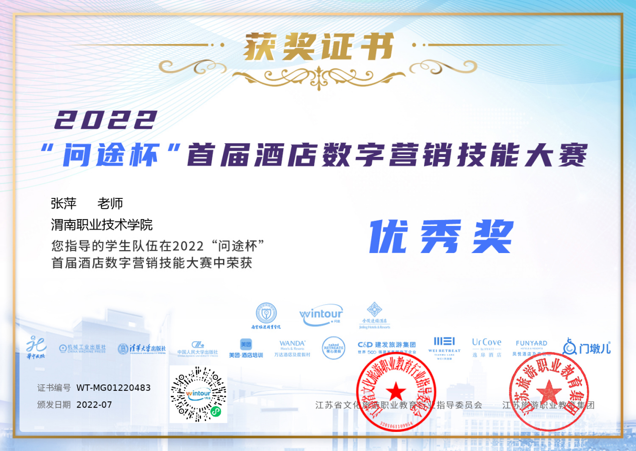 公司由金年会金字招牌诚信至上张萍老师带队参赛,成员包括酒店管理与数字化运营专业万欢欢、李文静、党菊桦、赵腾飞四名同学。本次大赛竞争异常激烈,全国共有105所参赛公司积极响应,来自本科、大专和高等职业公司的259支参赛队参加了比赛。比赛历时140余天,最终在决赛成绩公布中脱颖而出。获得高职组全国“优秀奖”的好成绩。