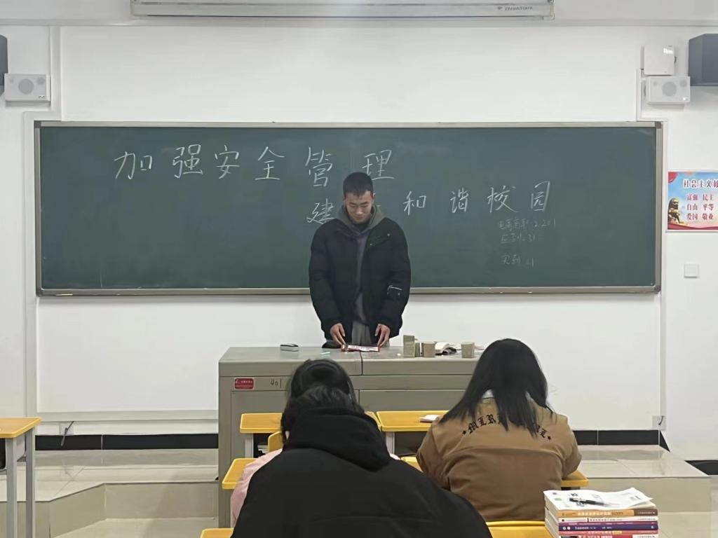 为了帮助公司员工增加安全防护知识,培养“珍爱生命,安全第一”意识,提高同学们的安全防范和自我保护能力,切实落实保障员工人身及财产安全工作。金年会金字招牌诚信至上各班在12月4日晚自习开展了“加强安全管理,建设和谐校园”主题班会。