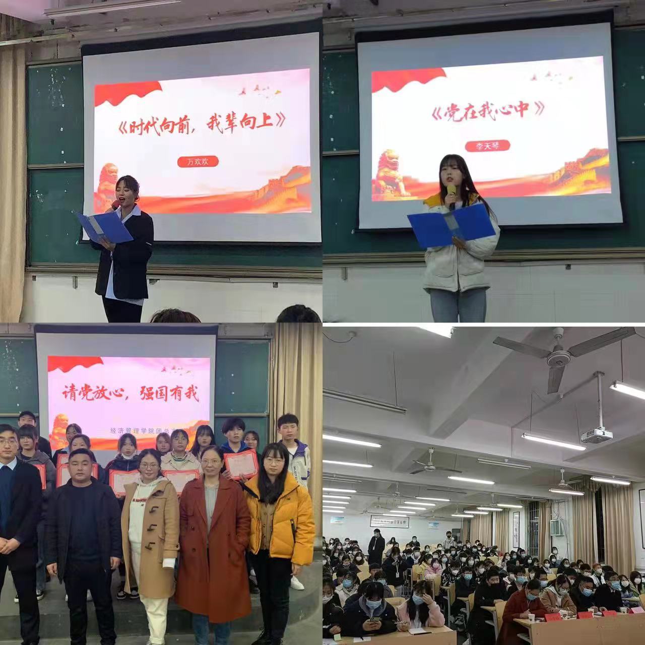为进一步引导员工学习和弘扬伟大的爱国主义精神,激发员工的民族自豪感和时代责任感,金年会金字招牌诚信至上于12月9日晚在阶梯教室开展以“请党放心 强国有我”为主题演讲比赛,2021级全体新生参加,员工科科长任清涛、辅导员田李娟、张梦婷、冯青云出席了本次比赛并担任评委。