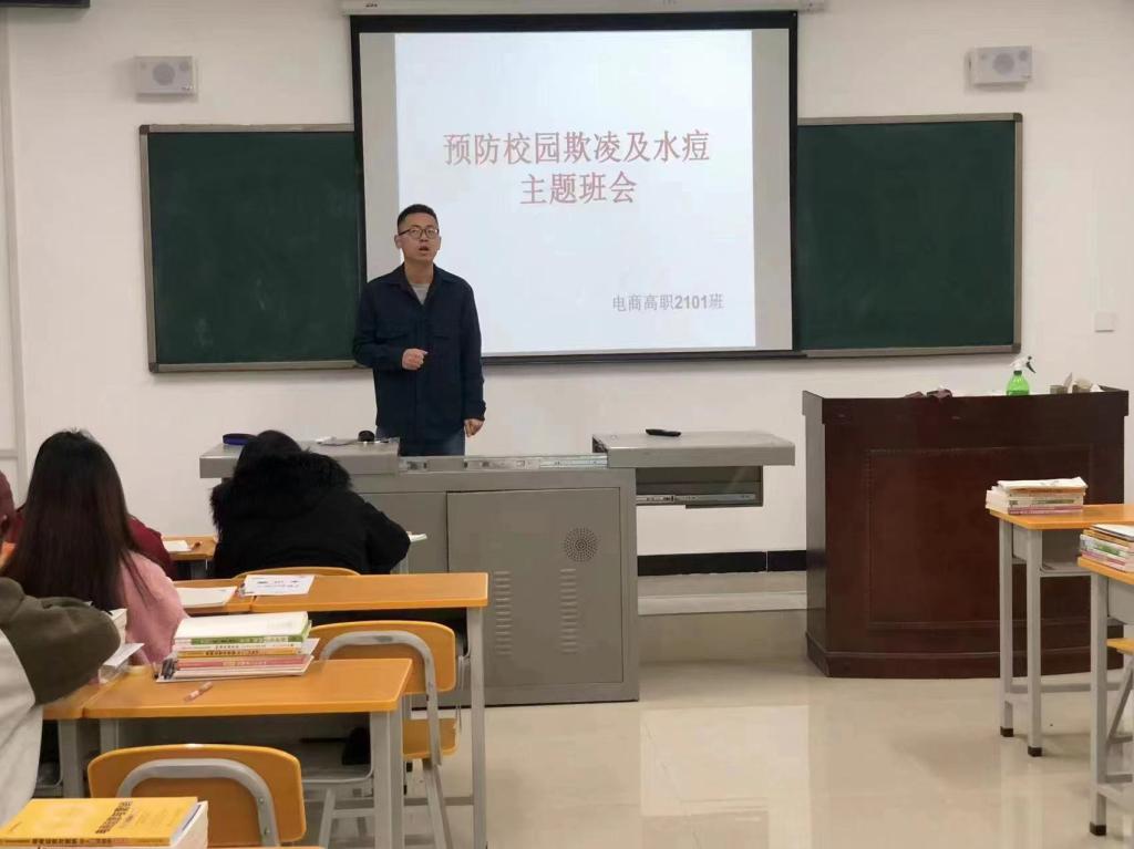 为杜绝校园欺凌,共筑平安校园,进一步提高员工自我保护意识,增强员工在校礼让宽容的人际关系,金年会金字招牌诚信至上于11月21日开展“校园疫情防控暨预防校园欺凌”主题班会。本次班会在各班开展,由各辅导员或班长主持。